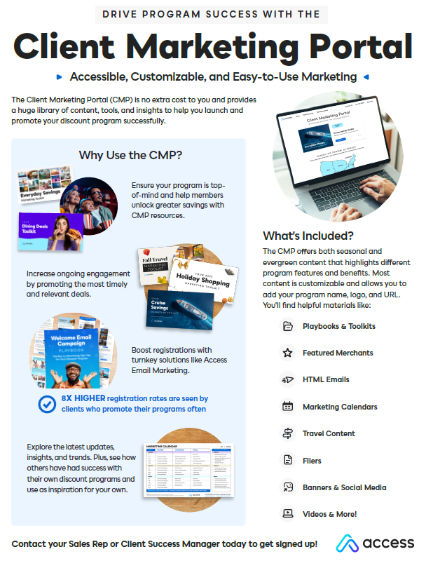Use these printed flyers for direct mail, events, or around the office to help keep your discount program top-of-mind. Some flyers can be personalized with your program name, logo, and url.